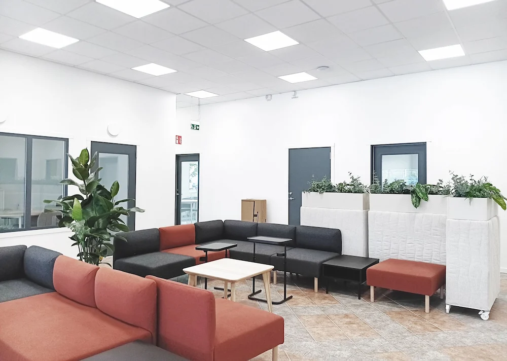 Projektet omfattar en total ombyggnation av två befintliga industrilokaler från 1970 och 1980-talet. Helt nya planlösningar har skapats och de tekniska installationerna har uppgraderats. Med hänsyn till hållbarhet och beställarens önskemål valde vi att behålla det befintliga klinkergolvet (då det är lång tid kvar av golvets tekniska livslängd) och anpassa projektets utformning efter det.