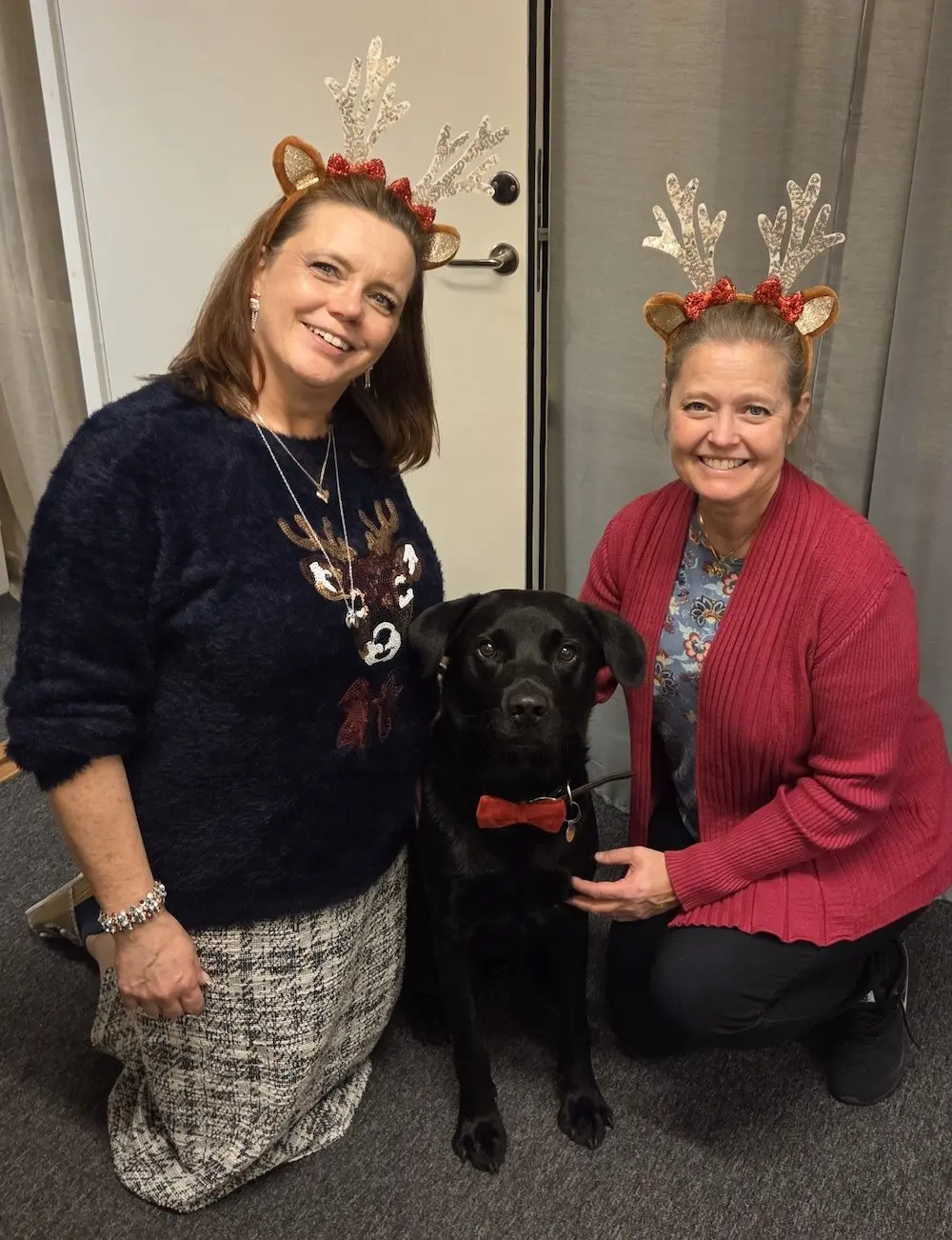 Tomtens renar (Nina Uddén och jag), finaste Atlas (som dagen till ära hade julfluga) och alla andra på Skyhill önskar er en riktigt God Jul!