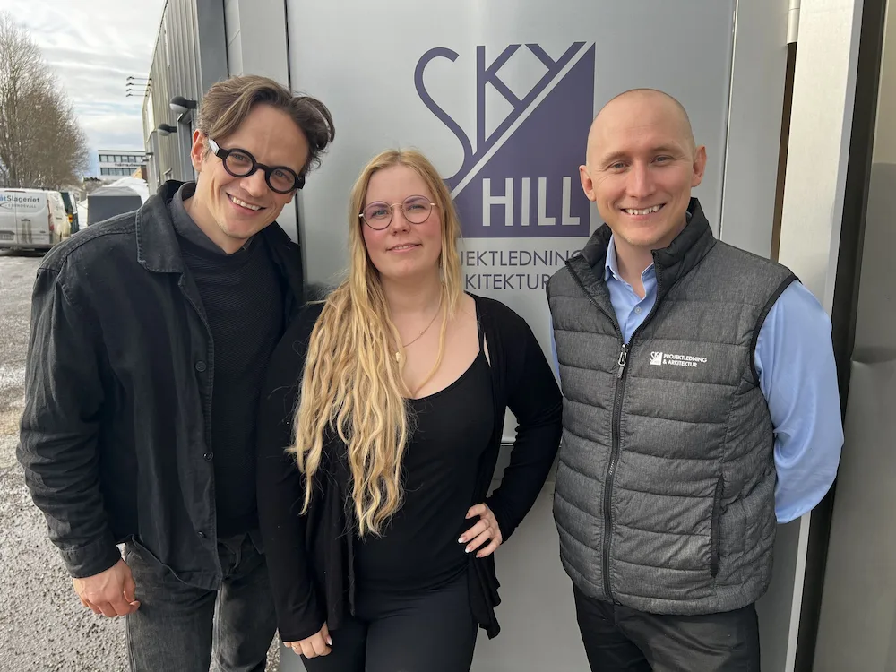 Skyhill har 28 medarbetare i Stockholm, och etablerade sig i Sundsvall i fjol då arkitekten Johan Bjärnström flyttade norrut och därmed öppnade byråns första kontor ute i landet. Nu har också Johans första medarbetare anställts, byggnadsingenjören Linnéa Sandgren.