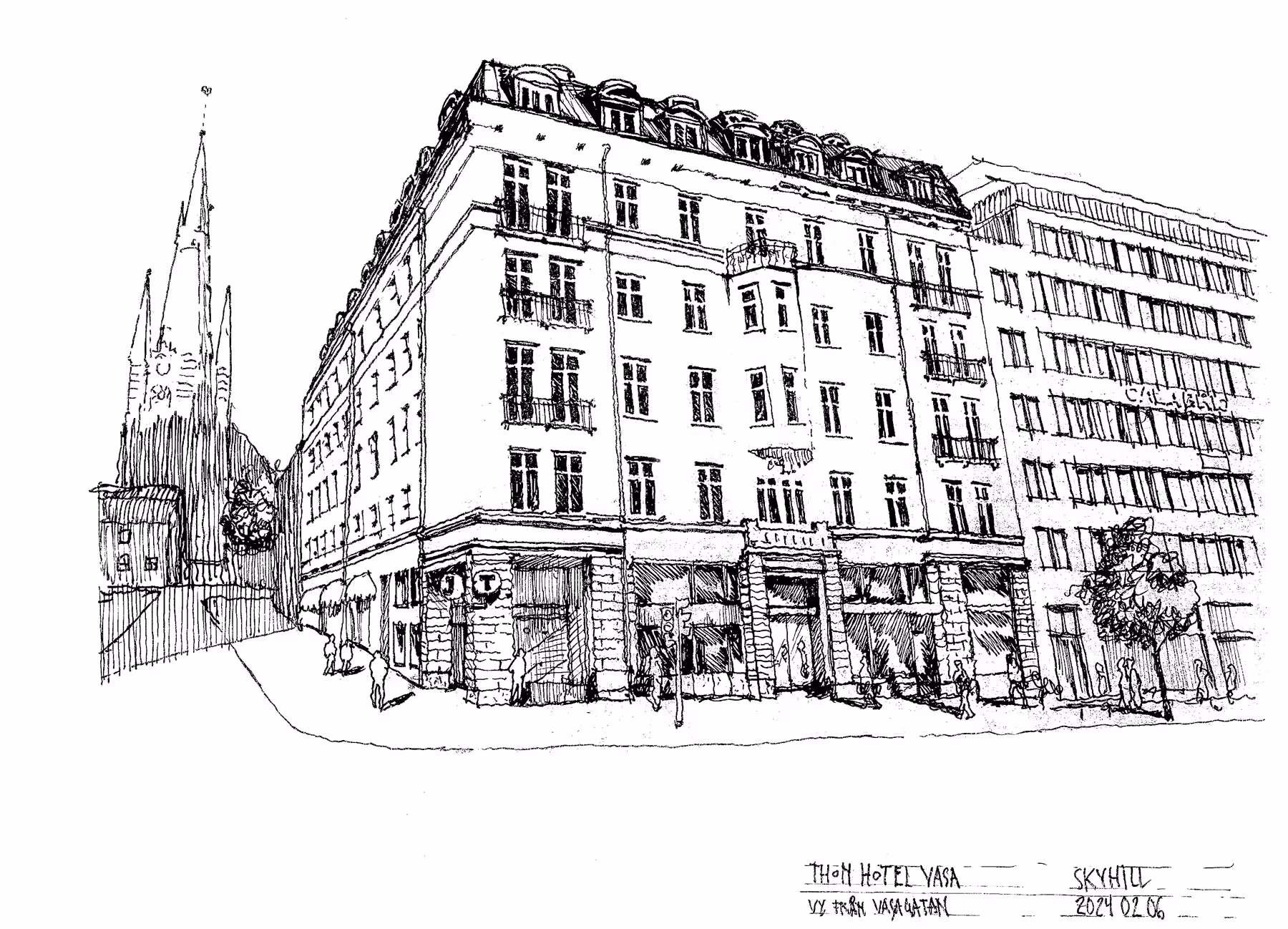 I hjärtat av Stockholm, mitt emot Centralstationen på Vasagatan, pågår just nu en omfattande renovering av Thon Hotel Vasa. Byggnaden har sedan den uppfördes i början av 1900-talet drivits som ett hotell och har under årens lopp byggts om och till flera gånger. Byggnaden har överlevt både Normmalmsregleringens renoveringsraseri under 1950-, 1960-, och 1970-talet (då de allra flesta av byggnaderna i grannkvarteren revs) samt byggande av tunnelbanan på 1950-talet.